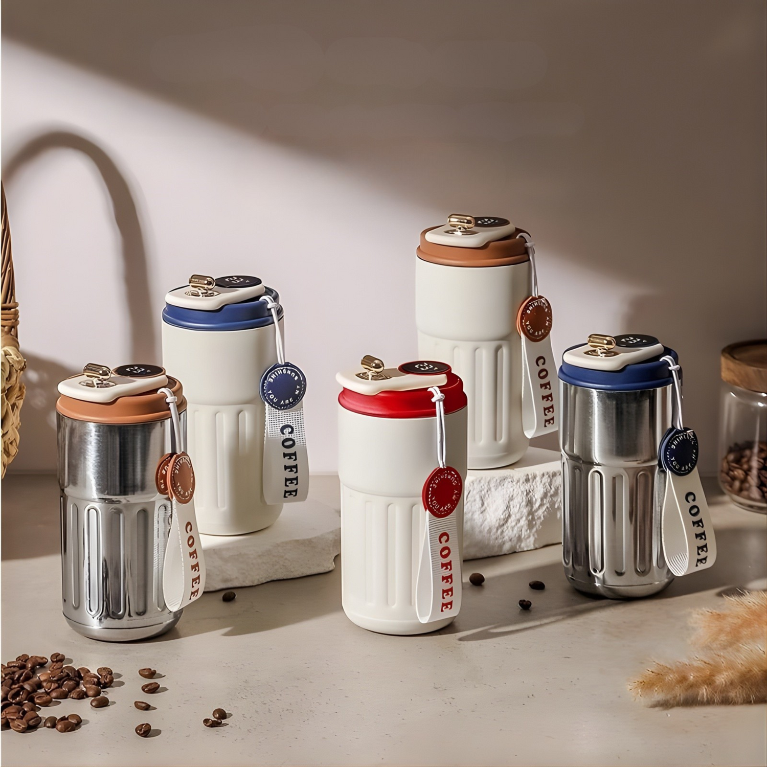 Stainless steel smart thermos with LED temperature display.