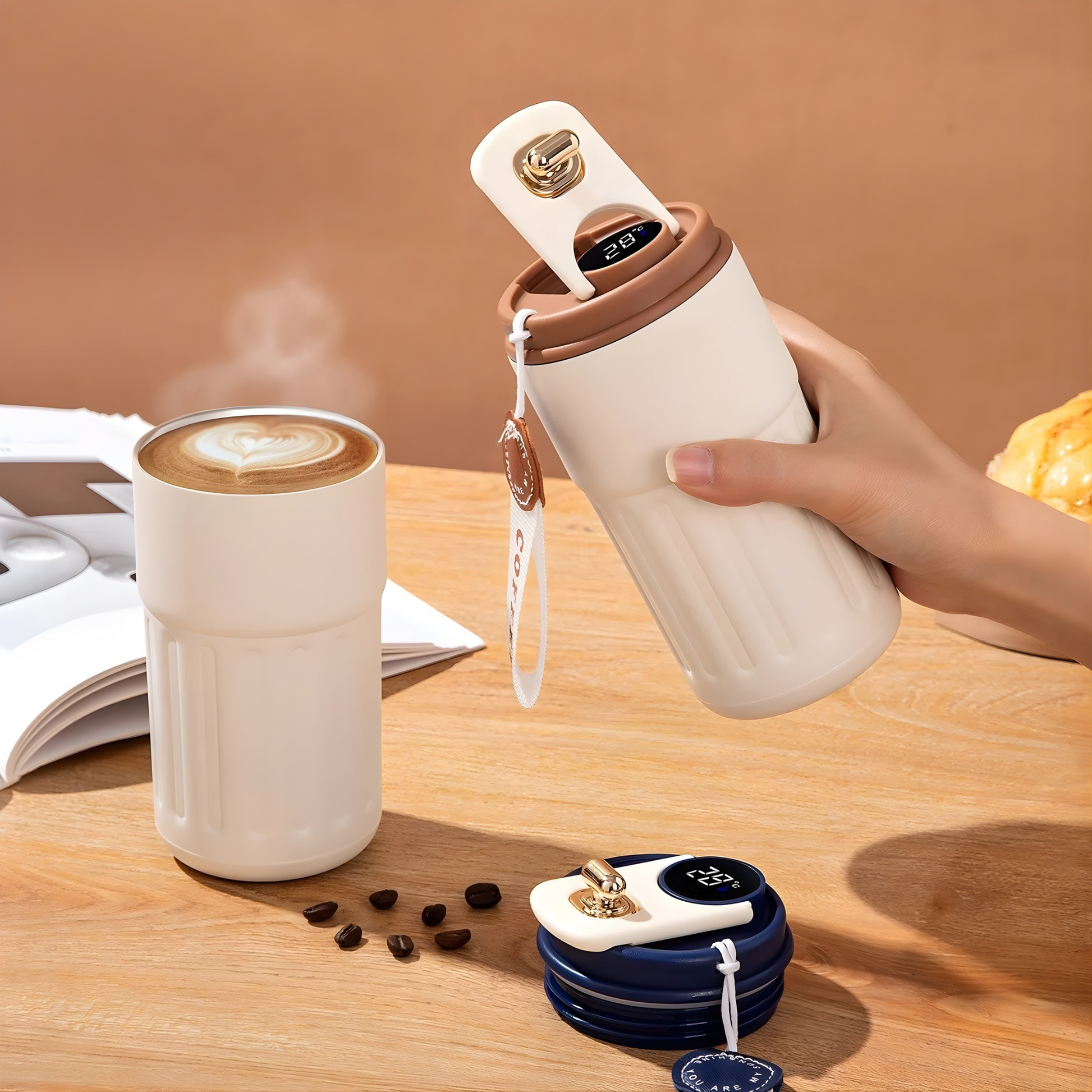 Incorpora una pantalla LED inteligente en la tapa que muestra la temperatura interior en tiempo real, permitiéndote disfrutar de tu bebida con total seguridad y evitando quemaduras.